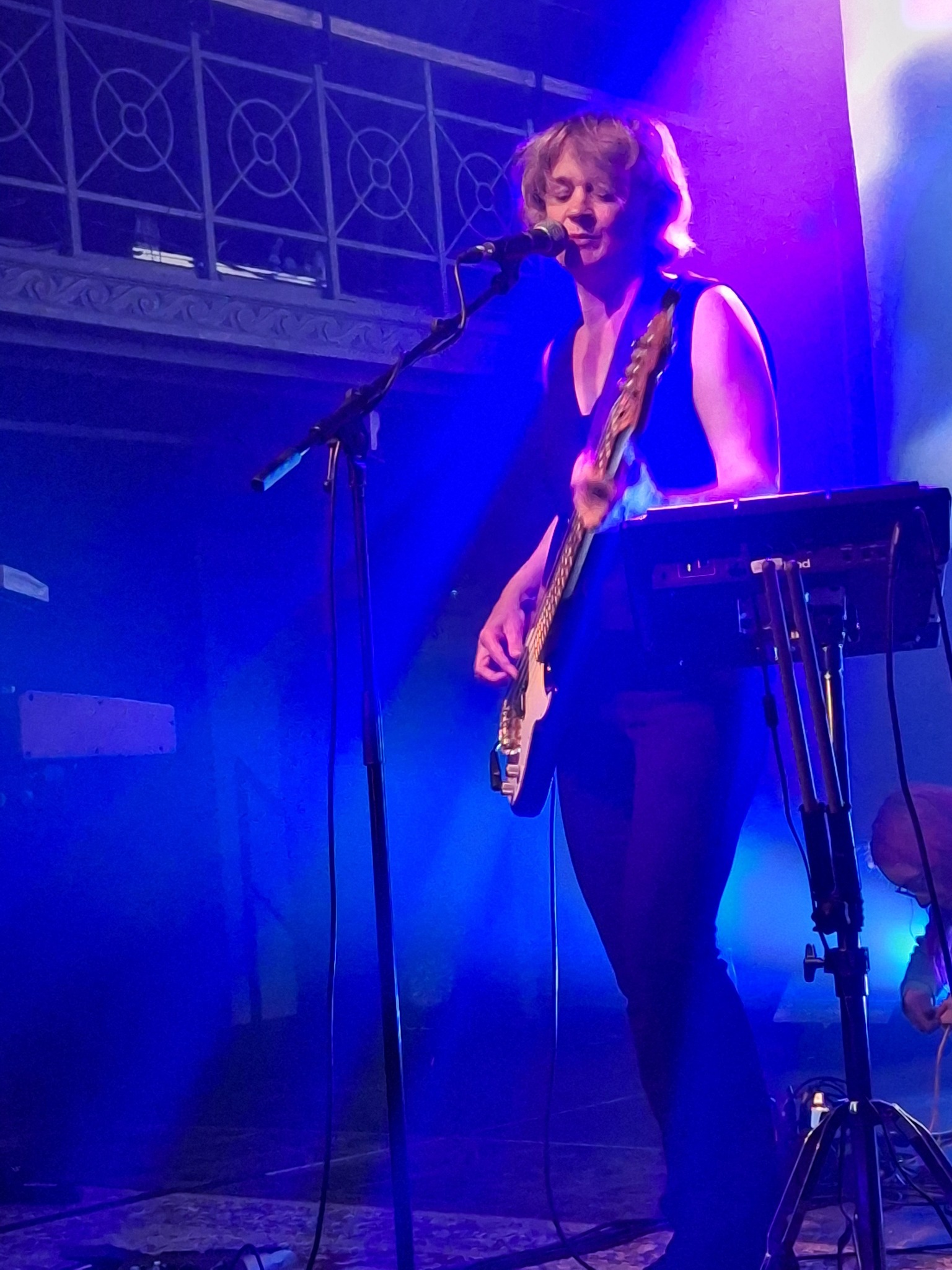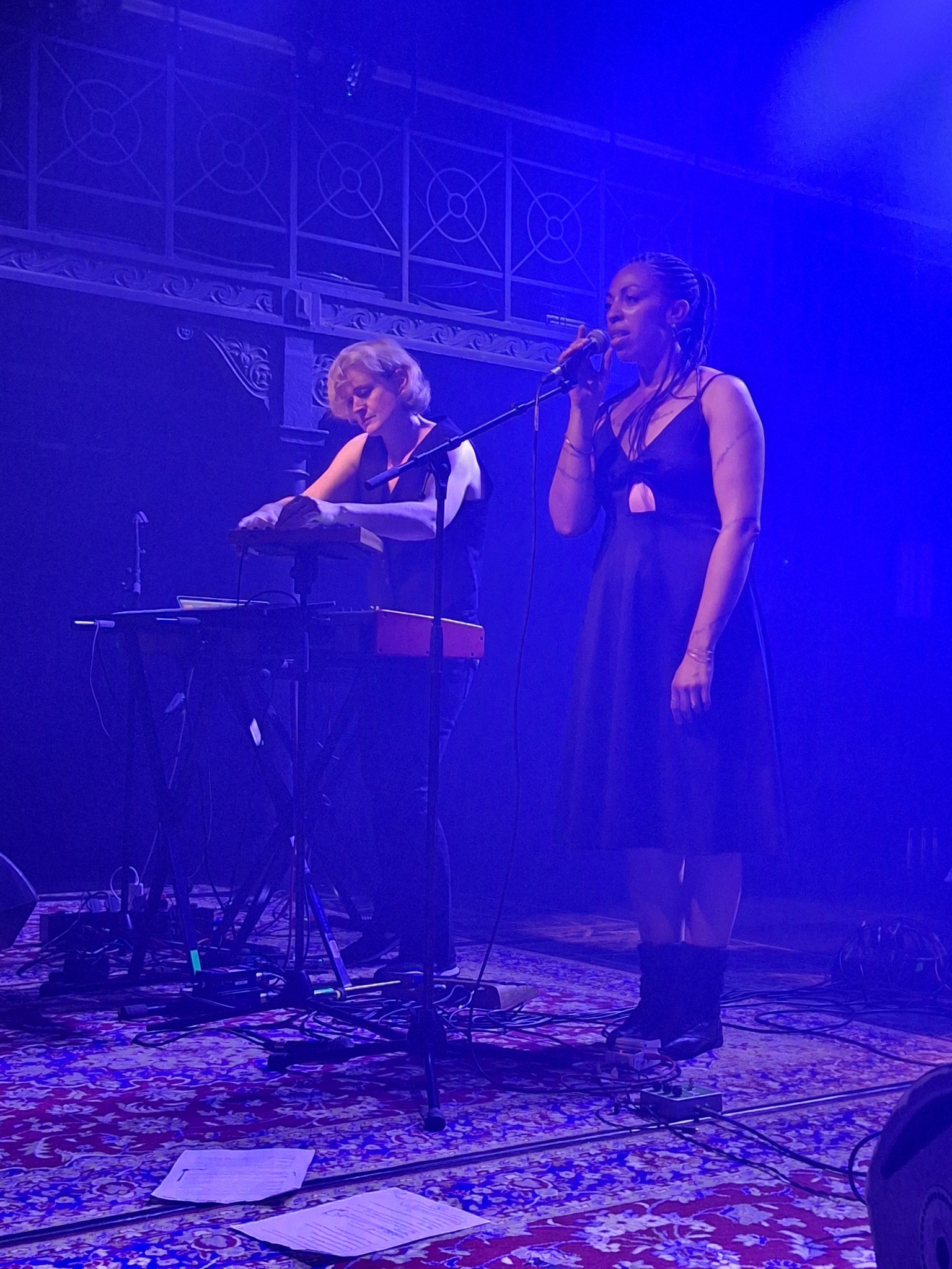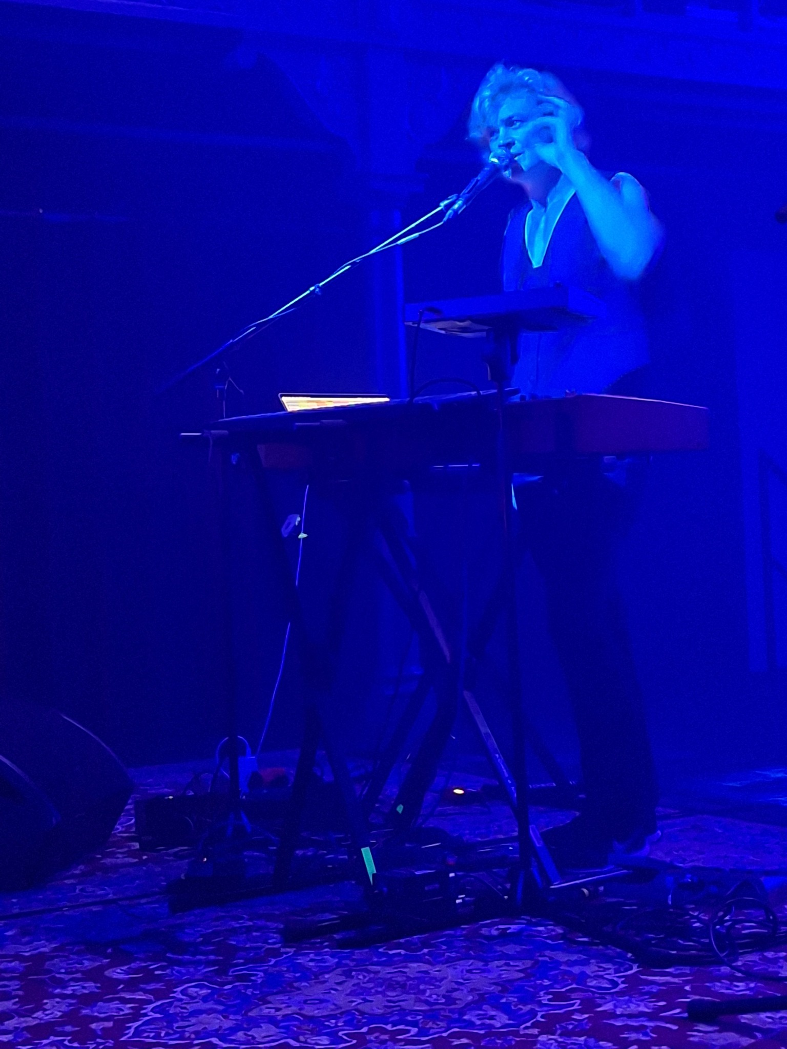 Cloé du Trèfle starts with electronical vibes and poetic lyrics (the best way to describe her latest album). The lyrics of La Luer are floating around in this nice room: invading the space whilst the music is inviting us to dance. This song also shows she has grown up and has become the French speaking version of none less but Anne Clark. Next to the music we also get nice visuals (sometimes illustrating the lyrics, sometimes just pumping up the song). “Ton Soufle” was written at the end of her south American tour (ending in Chile, where she had to undergo a military lockdown), when she could finally leave the city was burning (literally). This inspired her to write this song and we could see some images from back then. She plays the guitar, whilst the beats are pumping up the track, keeping the people dancing. It’s almost a The Neon Judgement song!