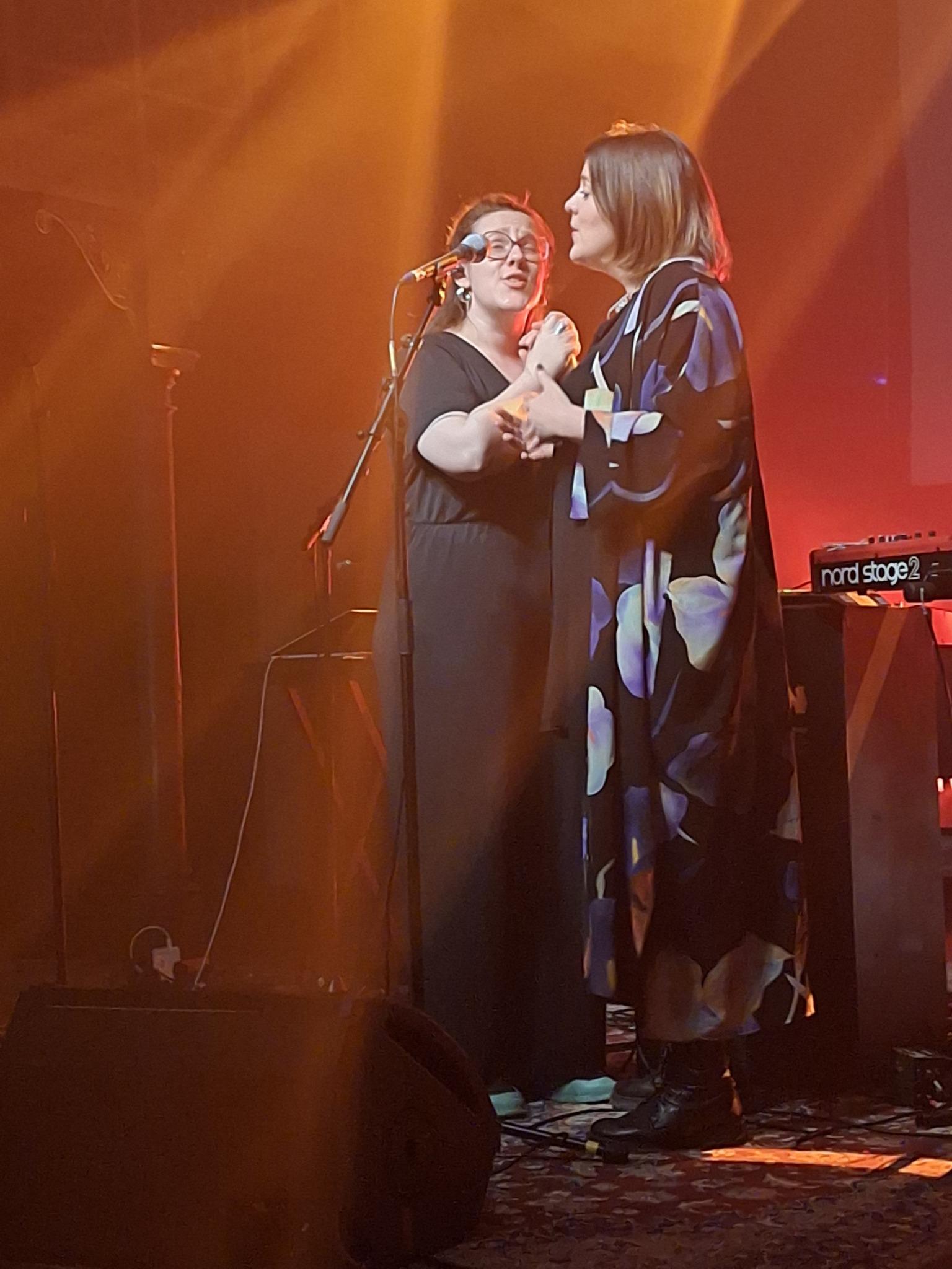 Time for call backs and yes we get a classic one: “L’amour et La Folie”: showing off her talent as a writer of funny stories and playing with words. She closes this night with a special guest! None else but Lisette Lombé (with whom she worked on an album called “Brûler Danser”). Lisette needed music for lyrics she wrote for the cultural Olympic Games in Paris. It’s this song that they bring as closure for this magical and powerful night!