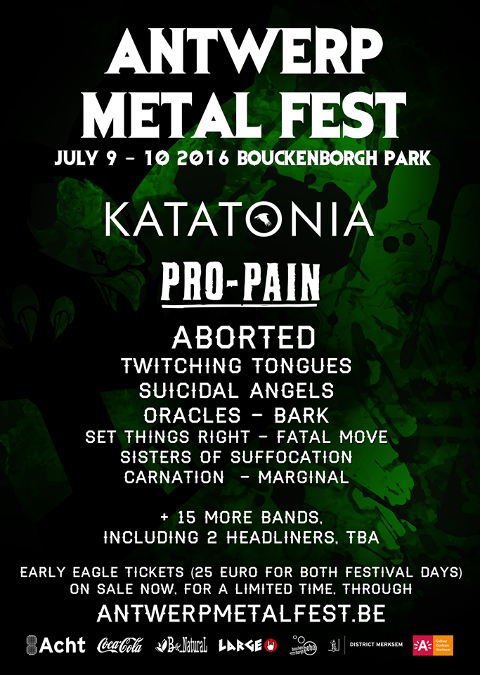 Dit weekend stond er het volgende bericht te lezen op de facebook pagina van Antwerp Metal Fest: Leuk avondje gehad op Antwerp Incest Fest gisteren? Goed. We maken ons klaar voor de eerste namen van Antwerp Metal Fest 2016. Meer dan tien bands, waaronder twee van de vier headliners, maken we maandag om 20u bekend. Vanaf dan gaat ook ons tijdelijk early eagle-aanbod van start: combitickets voor maar amper 25 euro. Het wachten is voorbij, hier zijn de eerste namen voor Antwerp Metal Fest 2016!