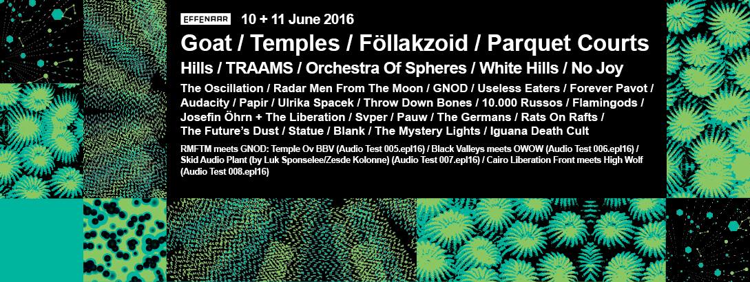 Headliners van Eindhoven Psych Lab zijn het Zweedse GOAT (world psych), Föllakzoid (neo kraut), Temples (60’s psych) en Parquet Courts (garage). In totaal spelen er meer dan 30 bands en acts op 4 podia. We geven een klein overzicht van het aanbod:
