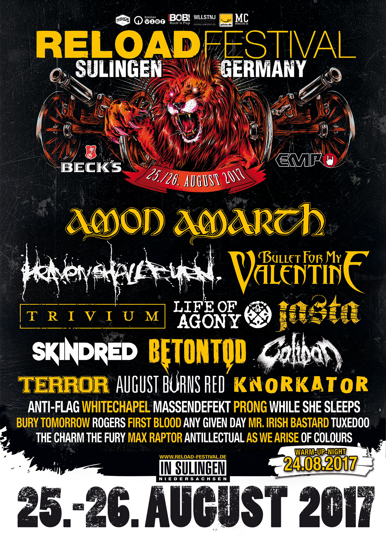 Vrijdag en zaterdag zakten we terug af naar het Duitse Sulingen voor de 11de editie van Reload festival met o.a. Bullet For My Valenine, Life Of Agony, Skindred Terror enz... Het volledige verslag verschijnt eerstdaags op onze site maar geniet alvast van de foto's van dag 1.