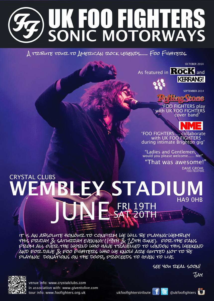 Nadat Dave Grohl vorige week zijn been brak bij een val van het een podium te Zweden werden er heel wat shows gecanceld. Waaronder die in het Wembley stadium en de show op Rock Werchter. De coverband heeft echter voorgesteld om op het podium naast het Wembley Stadium een performance uit te voeren. Het geld dat ingezameld wordt gaat naar een goed doel. Of deze groep ook op een kleiner podium zal staan te Rock Werchter is maar een vraagteken ...