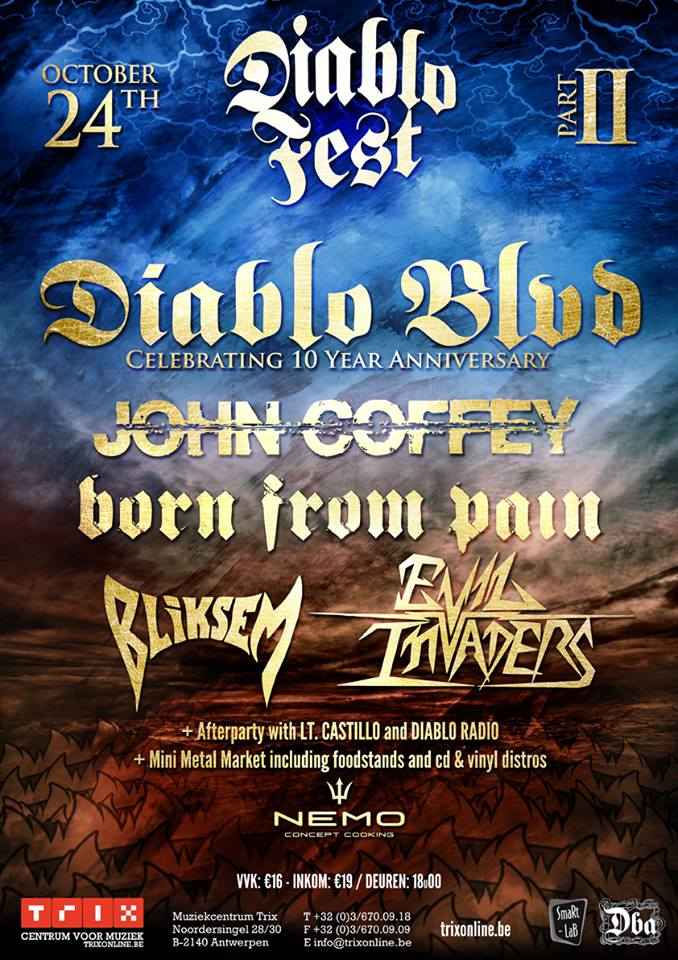 De lezer zal zich wellicht nog de eerste editie herinneren van Diablo Fest? Een mini festival georganiseerd door Diablo Blvd. , een concept waar ook de organiserende band optrad. Met een paar kleppers en toffe bands rondom hen. We hebben goed nieuws voor de fans, ook in 2015 zal er een editie doorgaan. Dit in TRIX op 24 oktober