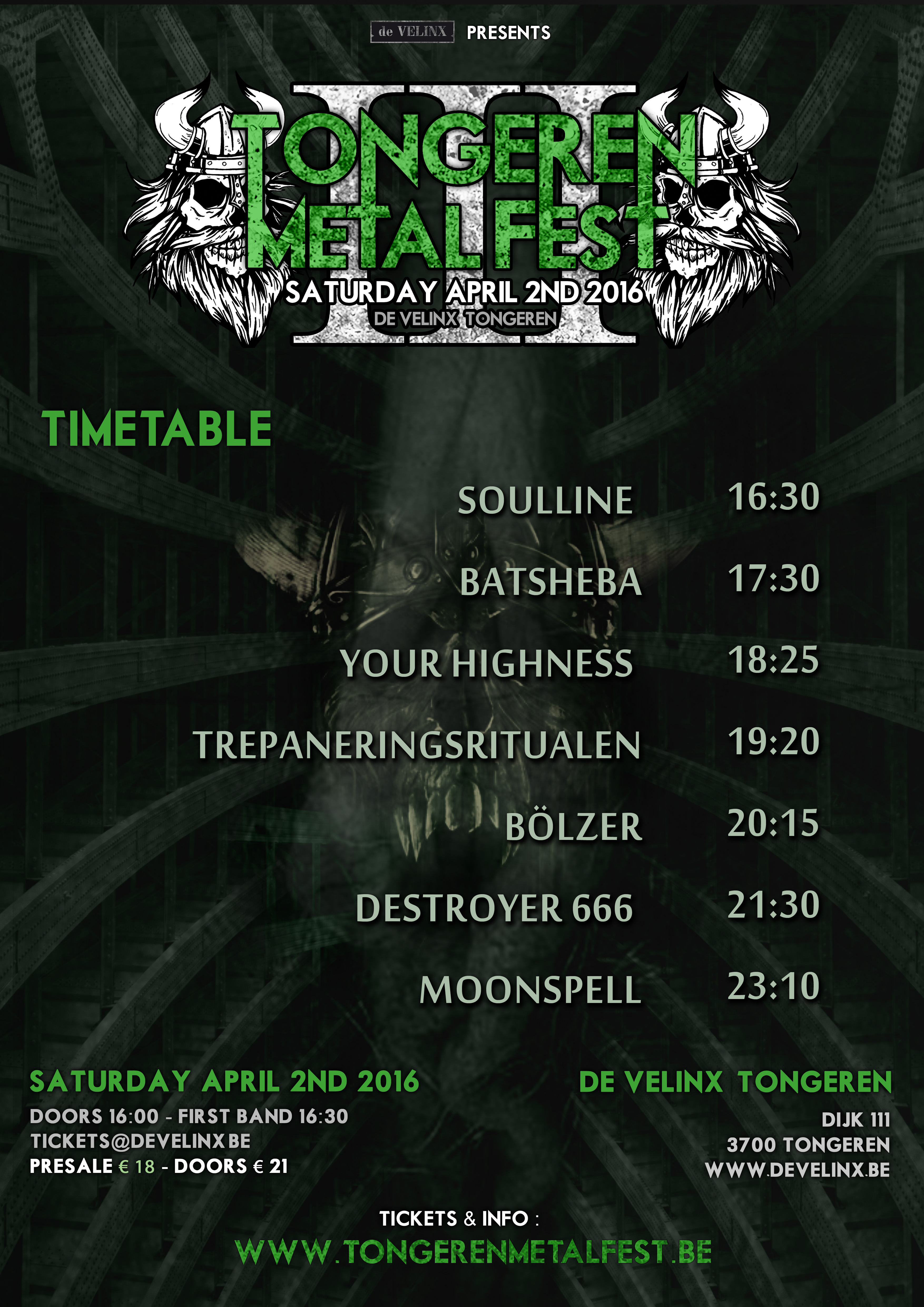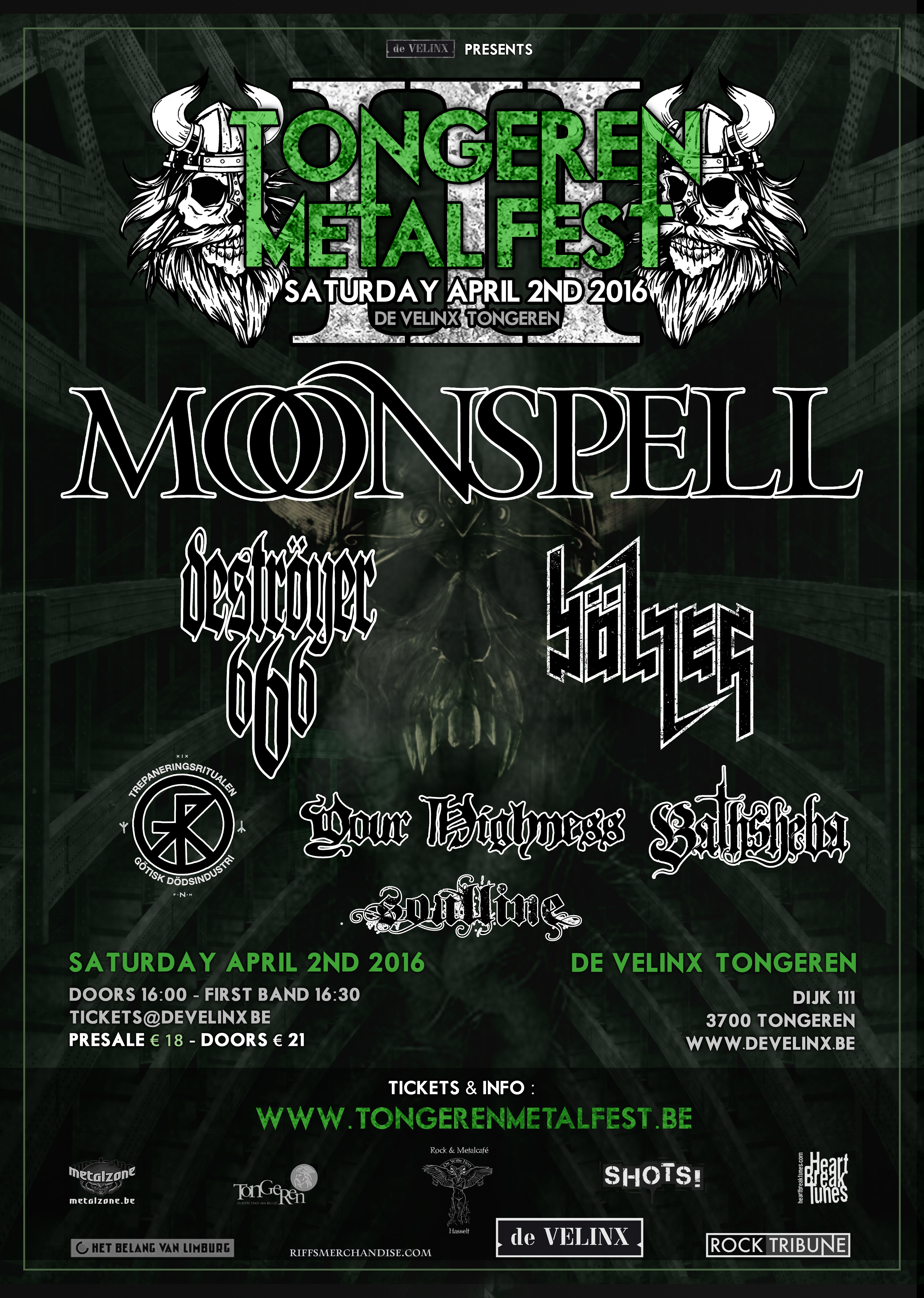 Het Portugese MOONSPELL - de terechte headliner van het festival - staat exclusief in de VELINX met een speciale ‘best-of’ setlist. Alle klassiekers zullen de revue passeren: van ‘Opium’ tot ‘Night Eternal’ en ‘Full Moon Madness’. De wereldwijd geprezen groep draait al sinds 1992 mee en scoorde een platendeal bij het gerenommeerde Napalm Records - het label van o.a. W.A.S.P. en Cavalera Conspiracy. Hun laatste optreden in België was volledig uitverkocht, dus wees er zeker snel bij!