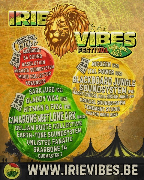 Van 23 tot en met 25 juli wordt Kortemark opnieuw ondergedompeld in diepe bassen en warme rootsvibes. VZW Greenforward organiseert dan een nieuwe editie van het Irie Vibes Roots Festival, dat drie dagen lang inzet op reggae, soundsystemcultuur en community.