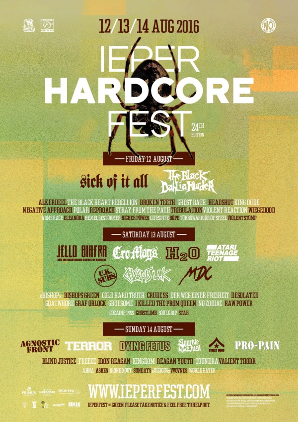 De hardcore - en aanverwante muziekstijlen - fans zullen wellicht al uitzien naar midden augustus. Want op 12, 13 en 14 augustus gaat naar goede gewoonte Ieper Hardcore Fest door. Agnostic Front, dying Fetus, H2, Sick of it All, Street Dogs. Het zijn maar een paar van de ronkende namen die reeds op de affiche van Ieperfest staan. Nu heeft de organisatie de laatste toevoegingen bekend gemaakt.