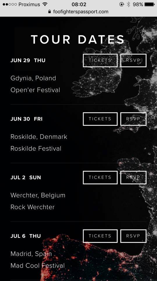 De hint was eerder al gevallen toen de Foo Fighters een map online hadden gezet met alle steden die ze zullen aandoen maar hen recente tourdata lijst tart voorlopig de beste verbeelding. Volgens de officiële site van Foo Fighters staan ze geprogrammeerd op 2 juli 2017. Het is nog even wachten tot de organisatie dit ook bevestigd.