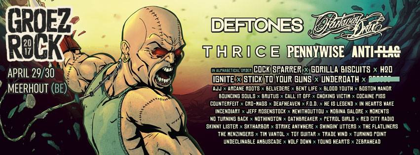 Groezrock gaat dus door op zaterdag 29 en zondag 30 april. Alle verdere informatie over het festival vinden jullie ook via de website: http://www.groezrock.be/