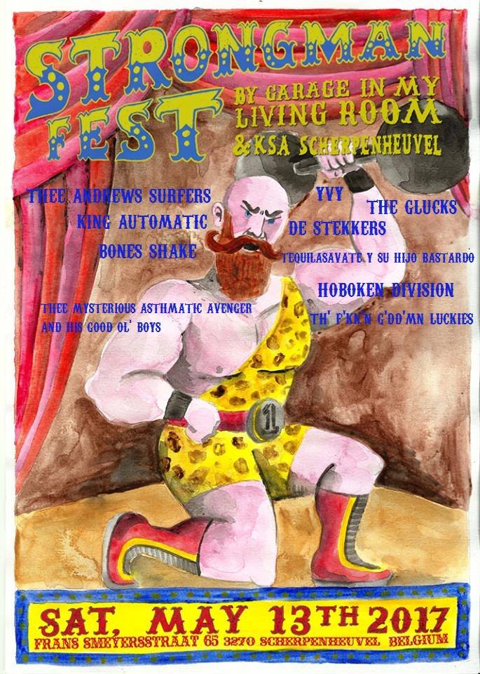 De organisatie 'Garage in My Living Room', organiseert met de regelmaat van de klok evenementen die letterlijk in zijn living plaats grijpen. Onder het moto: ''Garage In my living Room barst uit zijn voegen en zoekt de tuin op. 10 geweldige bands!!'' zal er 13 mei het evenement 'Strongman Festival' daar doorgaan. Naar aanleiding van het verschijnen van een mooie sampler-cd Garage In My Living Room Compiled , deze keer in de tuin dus.