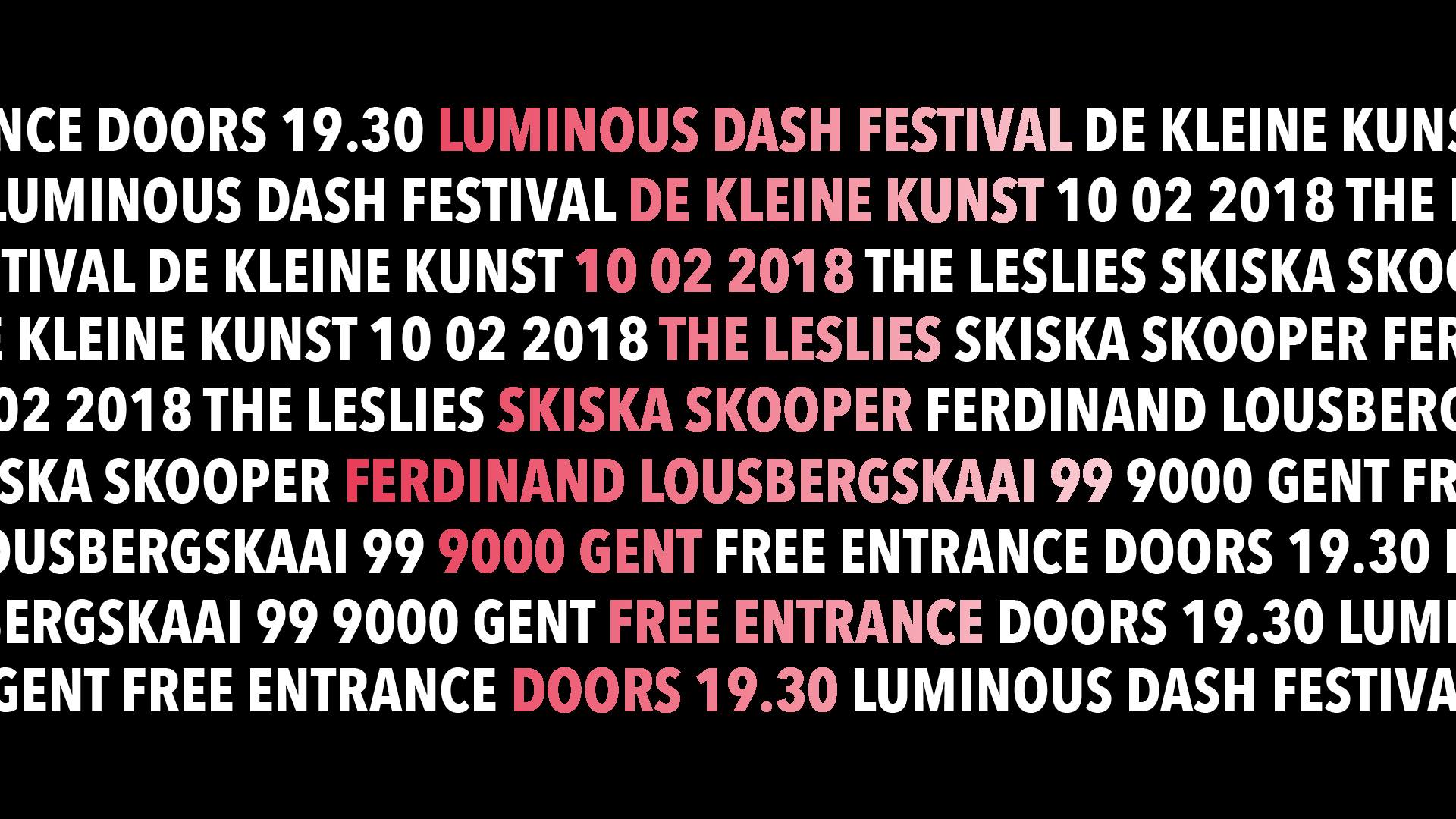 Deze derde editie zal doorgaan op Zaterdag 10 februari 2018. Deze keer echter niet in Kinky Star. De derde editie van Luminous Dash Festival zal doorgaan in 'De Kleine Kunst' - Ferdinand Lousbergskaai 99, 9000 Gent