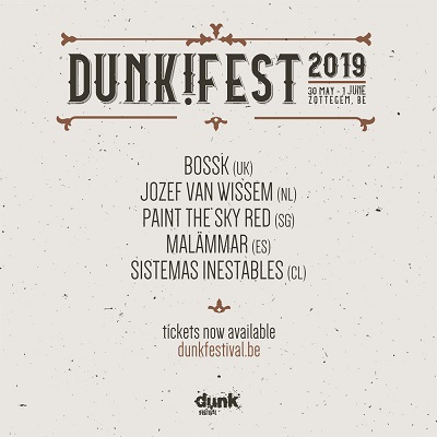 Dunk!Festival 2019 gaat volgend jaar door van 30 mei tot en met 1 juni. Voor meer informatie over de bands verwijzen we door naar deze pagina. Alle informatie over het festival kan je terugvinden op de Dunk! website.