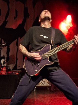 Rotzak mag het feestje in gang steken. Wegens een drukke week heb ik me niet kunnen voorbereiden, maar ik laat me graag verleiden. Deze vier mannen (schat iets jonger in dan ikzelf, het zijn dus geen jonkies meer) hebben een album welk verscheen in 2025: Headrush en willen dit maar al te graag aan ons voorstellen. Ze spelen de pannen van het dak en geven wel erg letterlijk alles wat ze in huis hebben. Hun frontman doet dat Iggy Pop gewijs, dit wil zeggen: springen, over de grond kruipen, zwaaien met zijn micro (hangt aan een draad), kruipt op de opeengestapelde versterkers, schopt in de lucht, staat amper stil: een héél fysieke aanwezigheid. De lead gitarist speelt het lekker scherp en weet ook wel hoe hij een prima solo uit zijn gitaar moet rammen, terwijl de drummer er niet zomaar op los slaat en ja: het geluid van de basgitaar mocht iets luider doorkomen. De metal Jani in me dwingt me wel om te wijzen dat witte kousen die duidelijk zichtbaar zijn niet echt het beeld is wat je wil hebben van een frontman. Het was stevig en naar het einde toe van de set zag ik ook dat de fans helemaal loskwamen en dat pogo gewijs even demonstreerden. Missie geslaagd!