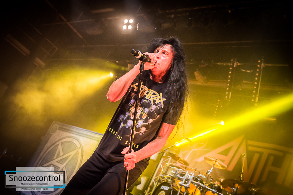 Na een klein uurtje was er 10 minuten pauze voordat ze aan de integrale uitvoering van “Among The Living” gingen beginnen. Deze pauze was nodig omdat ze het podium ombouwde naar de Stage setting van originele tour in de jaren 80, inclusief loop rampen en dergelijke. De volledige Cd “Among The Living” werd wel niet in de oorspronkelijk volgorde gespeeld, who cares, maar alle nummers kwamen aan bod, Among The Living, Skeltons in the Closet, Caught in a Mosh, Efilnikunfesin(NFL) enz…, als toegift kregen we nog “Antisocial” een vertaalde cover van het Franse Trust, die ze ook al jaaaaren spelen. Na 30 jaar staan de nummers van “Among the Living” sterk op hun poten en hebben ze niks aan kracht verloren, dit dankzij het enthousiasme en de energie van de band.